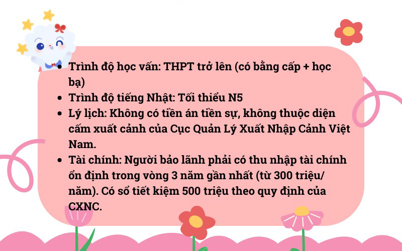 - Tài chính: Người bảo lãnh phải có thu nhập tài chính ổn định trong vòng 3 năm gần nhất (từ 300 triệu/ năm). Có sổ tiết kiệm 500 triệu theo quy định của CXNC.